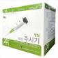 - 포장지를 개봉하여 주사기를 꺼낸 뒤, 침 결합상태를 확인한 후, 침 보호 뚜껑을 침 끝이 닿지 않게